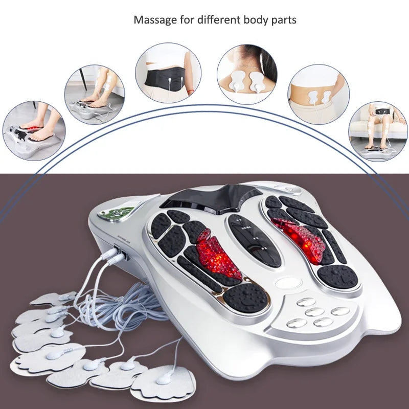 This foot massager uses far infrared and electro-magnetic therapy to stimulate pressure points and support foot care. Equipped with 8 EMS pads, it helps relax feet, improve circulation, and enhance overall wellness.
